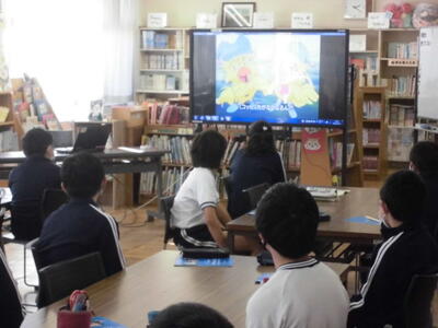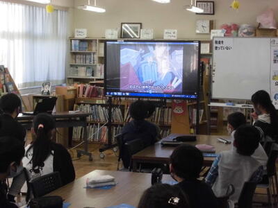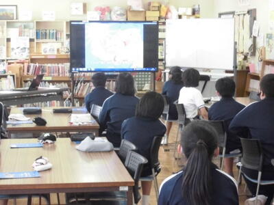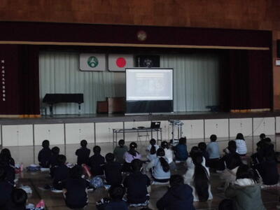 ↓ 子供たちも、真剣に映像を見たり、講師の方のお話を聞いたりしています。