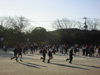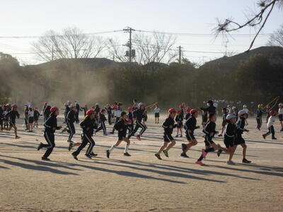 本日は風の強い一日となりました。朝の校庭では、子供たちが元気に運動に励んでいます。高学年はマラソン、低学年は縄跳びに取り組み、個人やクラスでの記録更新にチャレンジしています。