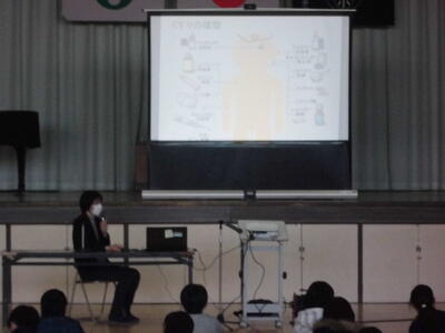 本日は、外部から講師の方をお招きして、体育館で高学年(5・6年生)の薬物乱用防止教室がおこなわれました。