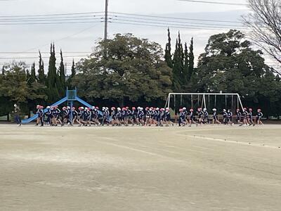今日の朝。校庭で元気に運動している子供たちの様子が見えます。