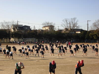 本日の朝は、さわやかタイムです。校庭で子供たちが元気に運動に励みました。