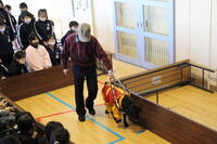 本日は、4年生の福祉体験学習で、盲導犬を連れた方に来校いただきました。盲導犬との生活や盲導犬の行動などについてお話をいただきました。4年生の子供たちも、全ての人が幸せに暮らすために、自分たちに何ができるのかを考える機会となりました。