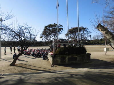 2月になり、6年生の卒業も近づいてきました。本日は、6年生が毎日おこなっている校旗掲揚の仕事を5年生に引き継ぐ引き継ぎ式がありました。
