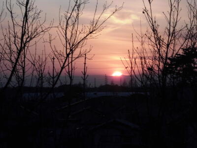 2月になり春が近づいてきています。日ものびてきました。下の写真は、小渕小の校舎から見えた昨日の夕焼けです。