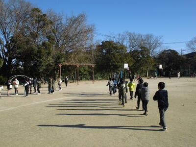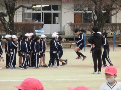 本日は、校内の長縄とび大会です。業前の時間を使って、各クラスが今まで練習に取り組んできた成果を発揮しました。
