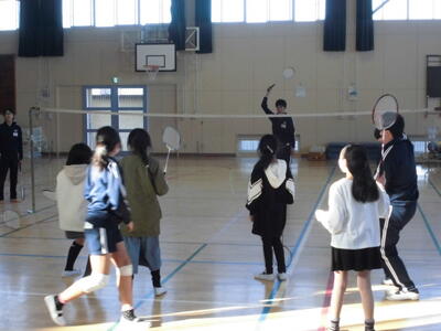 上級生のプレーを見て歓声をあげたり、上級生に教わって体験したりしながら、見学をしました。