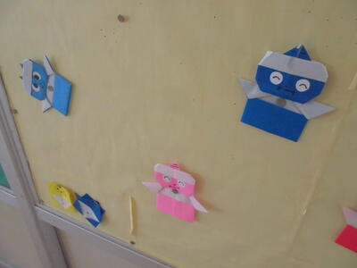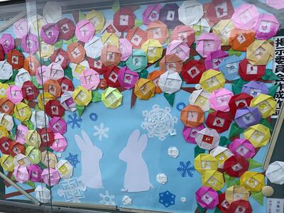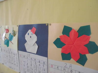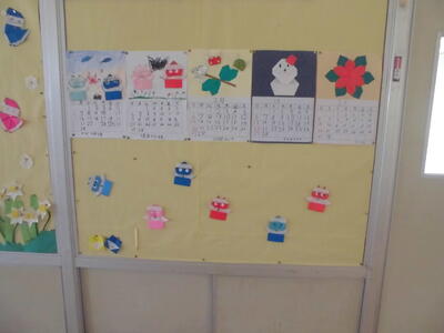 たんぽぽ・ひまわり学級の廊下の掲示も2月らしいものに変わっています。
