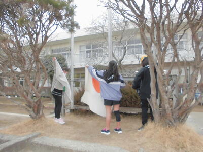 卒業を控えた6年生から、5年生が率い継いだ大切な役割、校旗の掲揚と降納。今日も5年生が、帰り際に校旗を降ろしてしまっていました。大切な役割に責任をもって取り組んでいます。