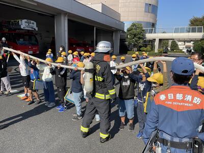 春日部消防本部様、田中帽子店様、ていねいに説明していただいたり子供たちの質問にもご対応いただき、充実した社会科見学となりました。