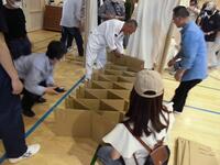 今日は、小渕地区にある6つの自主防災会(島自治会自主防災会、小渕本村自主防災会、原前地区自主防災会、小渕追分自治会自主防災会、小渕観音前自主防災会、小渕松河地自主防災会)の合同自主防災訓練が小渕小の体育館を会場に行われました。自主防災会から総勢100名の参加者が集い、盛大に実施されました。東京電力パワーグリッドから3名の方が講師としてお越しになり、地震と火災の関連について、事例を交えながらお話がありました。地震により停電した後、そのまま避難してしまうと、停電復帰後に電化製品に電気が流れ、漏電やヒーターによる火災につながることもあるそうです。地震で避難所に避難する場合は、電気のブレーカーは落としてから避難することが大切です。感震ブレーカー(強い揺れを感じると自動でブレーカーを落とす装置)の紹介もありました。また、春日部市危機管理防災課からは6名の方が来てくださいました。避難所の開設について、動画と実演を交えてお話してくださいました。その後で、参加者全員が6つのグループに分かれ、簡易型パーテーションと段ボールベッドを組み立てました。震災時には、「自助、共助、公助」と言われますが、今日の訓練では「共助」について地域の方と体験をとおして学ぶことできました。いざ有事には小渕小学校は避難所になります。地域皆様、安心して避難してきてください。御指導くださった皆様、参加してくださった皆様、お世話になりました。ありがとうございました。