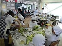 今日は、1時間目に3年生がトウモロコシの皮むきをやってくれました。トウモロコシは今日の給食の献立の一つです。全校児童分を3年生全員でむきました。手洗いと消毒を丁寧に行い、粒一つ一つを傷つけないよう優しくむきました。給食で食べたとうもろこしは一粒一粒がシャキシャキの食感でとても甘く、デザートを食べているようでした。3年生の皆さん、ありがとうございました。