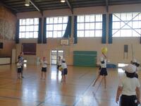4年生・体育:キャッチバレーボール、チームで協力して取り組んでいます。