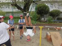 昼休み・鉄棒教室:今週は運動委員が支援者となって鉄棒教室を実施します。初日にもかかわらず、逆上がりができるようになった小渕っ子が見られました。