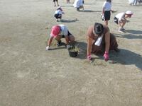 繁茂した雑草が非常に多い小渕小では、こどもたちの作業だけではとても追いつきません。