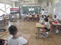 4年生・外国語活動:夏休みに行った場所を英語で伝え合っています。