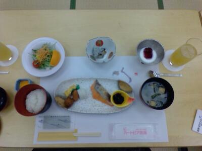 その後、参加者の皆様には、児童が配膳している様子などを見学してもらい、今日の献立を試食してもらいました。