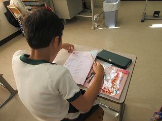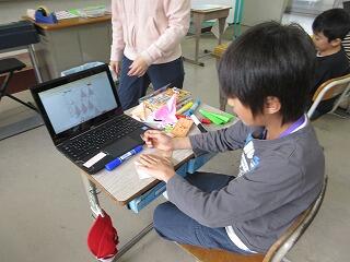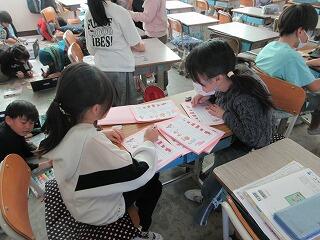 ★国語の時間、「工芸品のみりょくを伝えよう」の学習をしていました。教科書での学習を生かして、自分で調べた工芸品の魅力を書きます。はじめ・なか・おわりの段落構成を意識しながらしっかりと文章を書くことができていました。