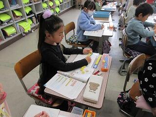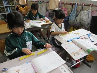 分数の概念の理解は子どもたちに難しいと思いますが、先生の説明をしっかり聞いて学んでいました。