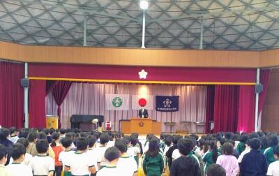 今日は全校朝会です。