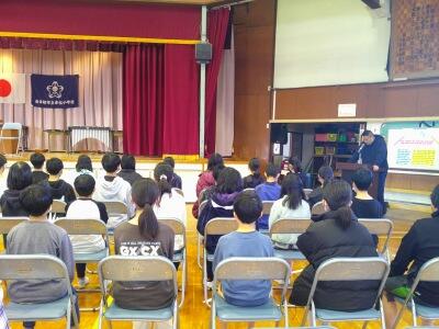 昼休みに体育館に子どもたちが集まっています。