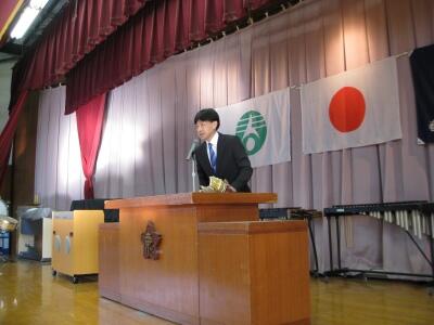 校長先生から、大谷選手からいただいたグローブについてお話がありました。
