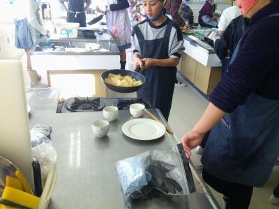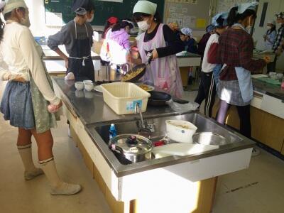 6年生が調理実習を始めていました。