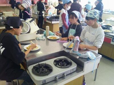 6年3組が「身近な食品でおかずをつくろう」で調理実習です。