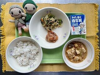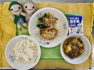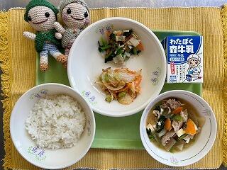 今日のハヤシライスのじゃがいもは、「彩の国ふるさと学校給食月間」にちなみ、地元農家である「大越農園」さんで収穫された「男爵いも」を使用しています。ほくほくとしていて、お芋のうま味が感じられます。大越農園さん、ありがとうございました。