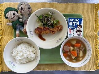 「とんかつ」と「磯香和え」は、今年の3月に、今の2年生から6年生の児童のみなさんに、食べたいおかずに投票してもらい、票が集まったメニューを取り入れました。