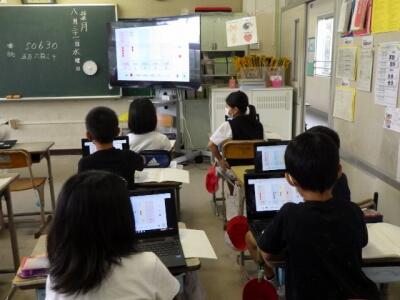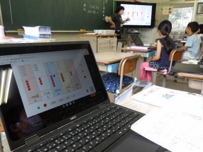 児童の画面は大型モニターに表示されます。