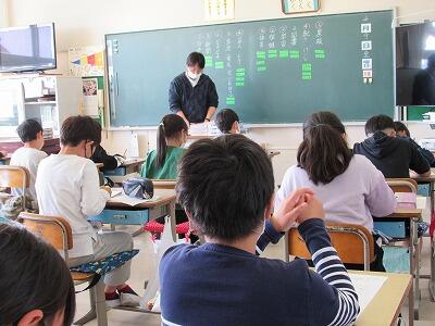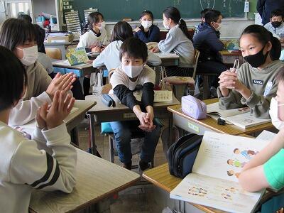 ◆となりの5年生は、少人数指導の先生とあいさつをしています。