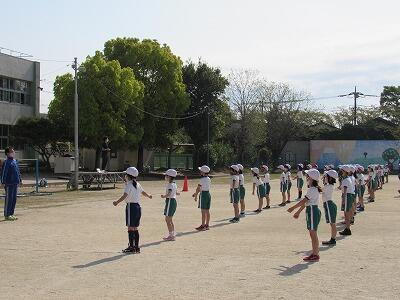 ◆朝の「元気タイム(3・4年生)」です。まずは、ラジオ体操です。