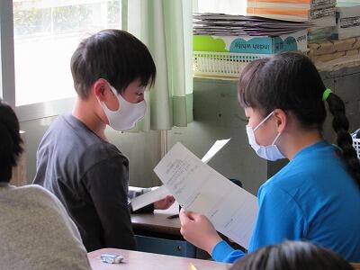 ◆6年生は、自己紹介カードを作成中です。「よろしくね。」