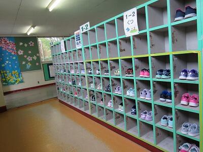 ◆1年生は、昇降口の使い方を学習中。「楽しいです。」と言っています。