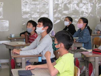 ◆音楽室に来ました。5年生の小さな声できれいなハーモニーです。