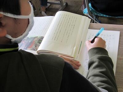 ノートに詩をていねいに視写し、いよいよ読みが始まるところです。