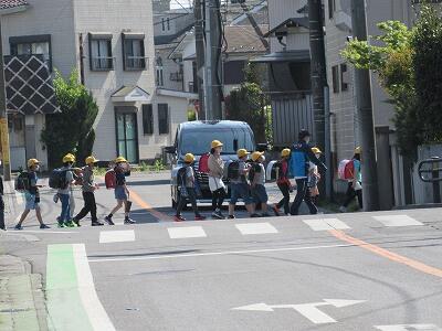 横断歩道では、地域の方が見守ってくださっています。ありがとうございます。