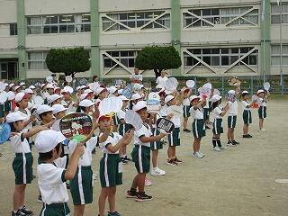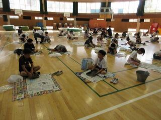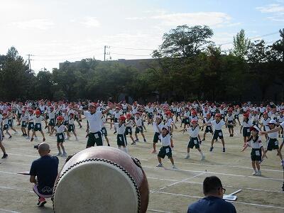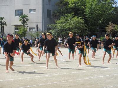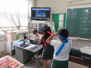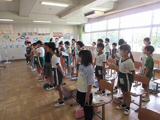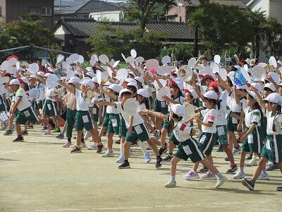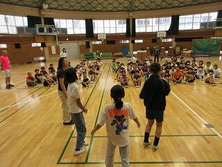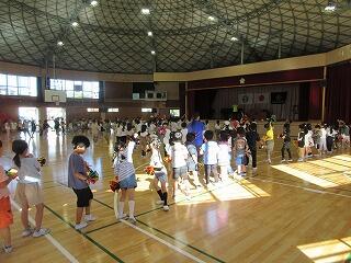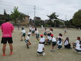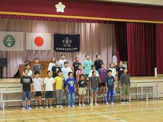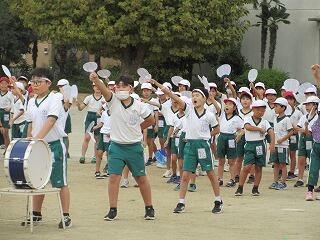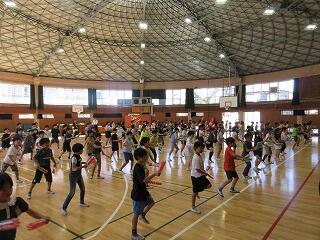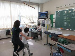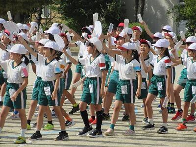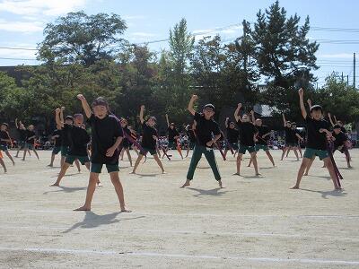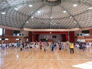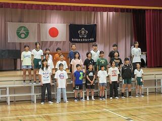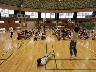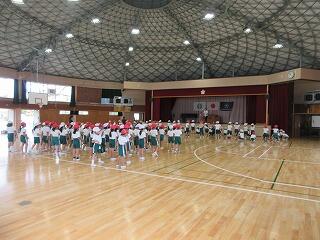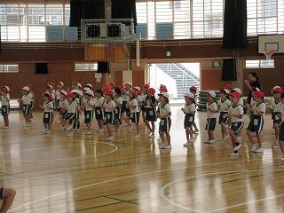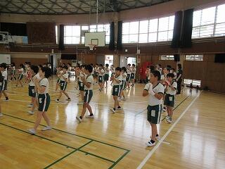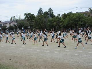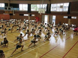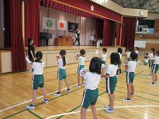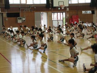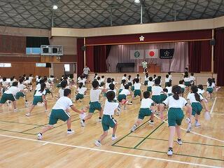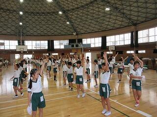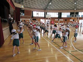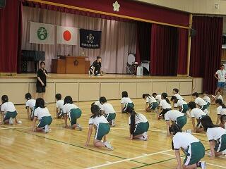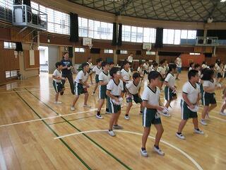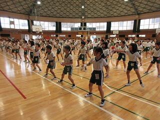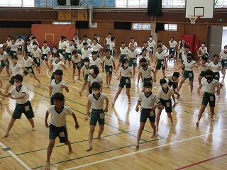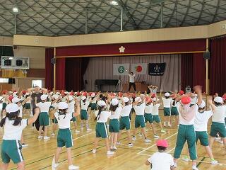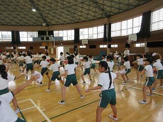 3・4年生でいっしょに行う団体演技に向けての練習です。練習初日でしたが、先生のお手本を見ながらリズムに合わせて一生懸命踊っていました。みんなで心を一つにして取り組む素晴らしさをぜひ味わってほしいと思います。