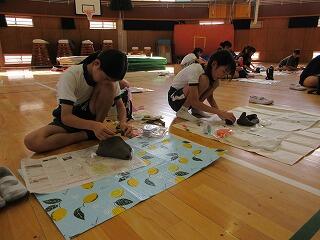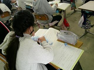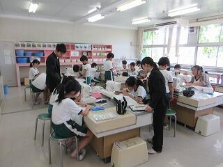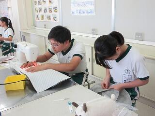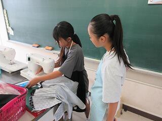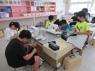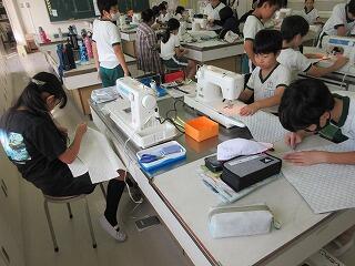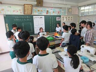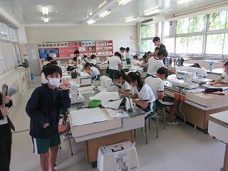 ★家庭科の時間、ナップザックづくりを行っていました。教育実習生への示範授業でした。