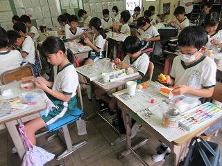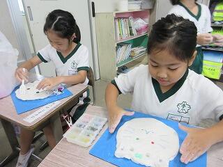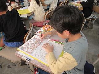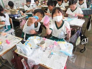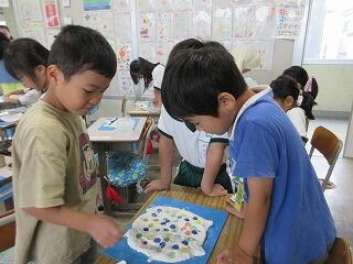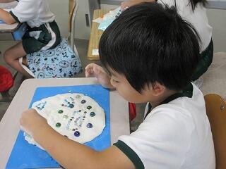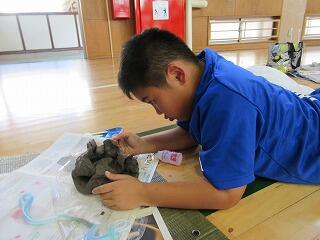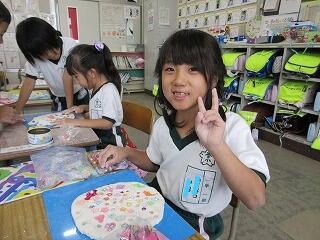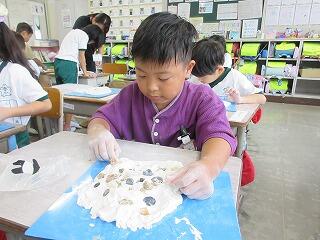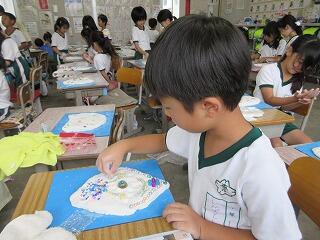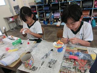 ★図工の時間、「いろいろなともだちはなしだす」の学習をしていました。紙ねんどにいろいろな飾りをつけて作品をつくっていました。とても楽しそうでした。