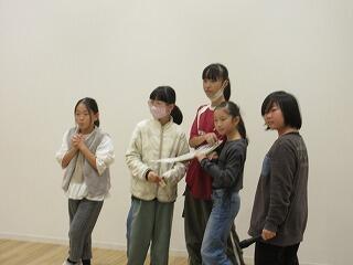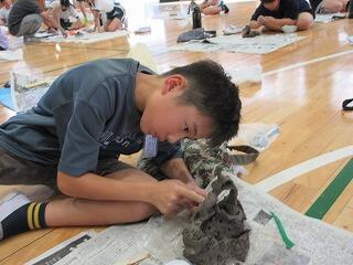 ★まいて、丸めて、持ち上げて。不思議な形から何ができるかな。作品づくりに集中していました。