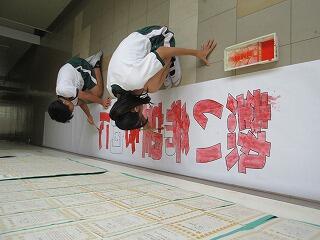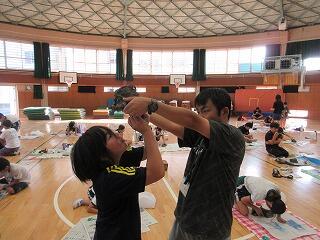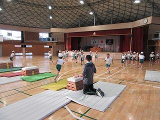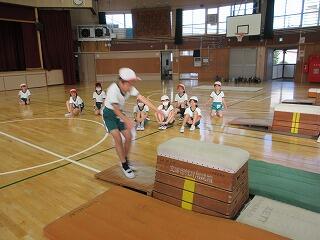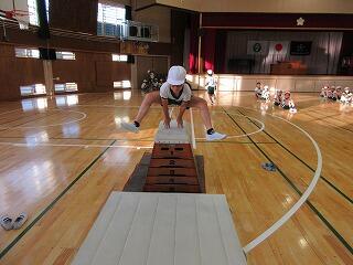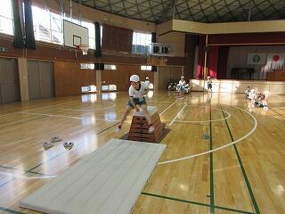 開脚跳びや台上前転の技を習得しようととても意欲的に取り組んでいました。