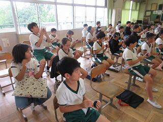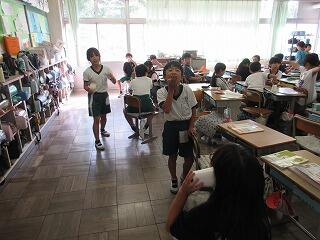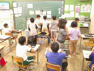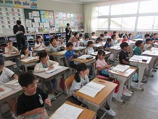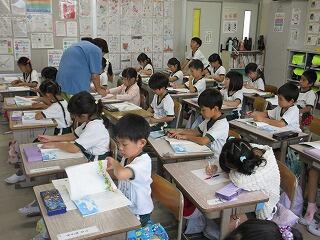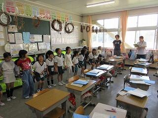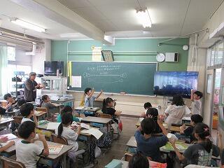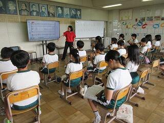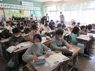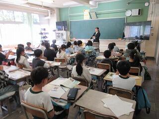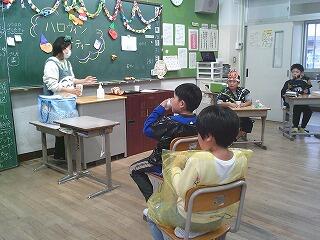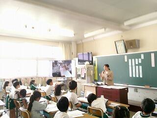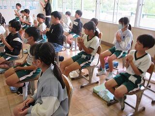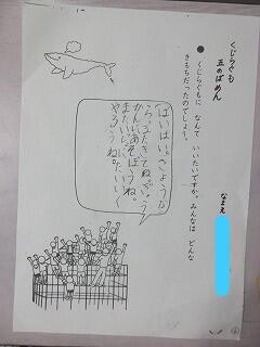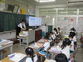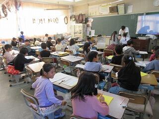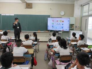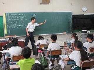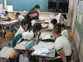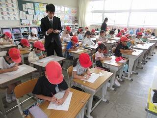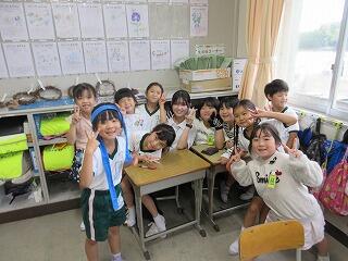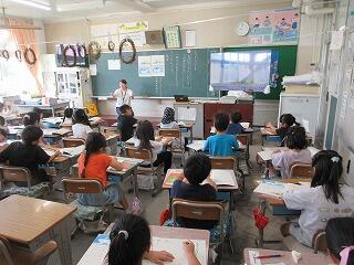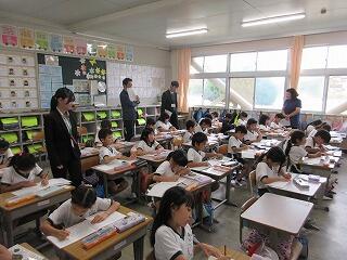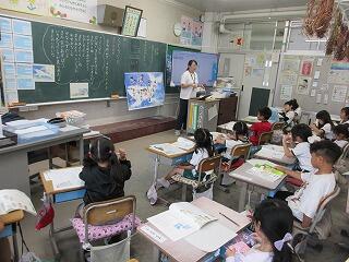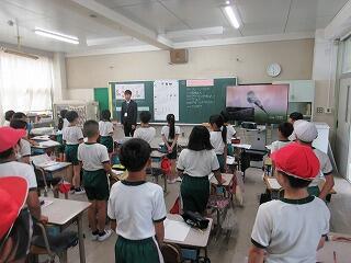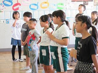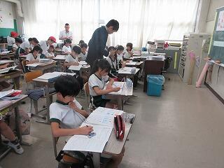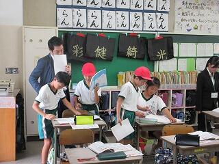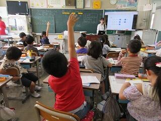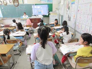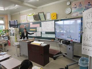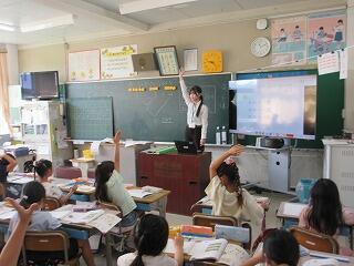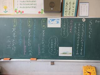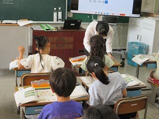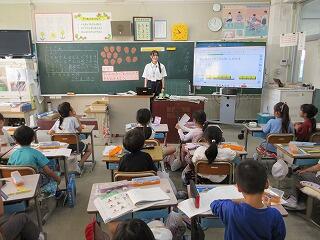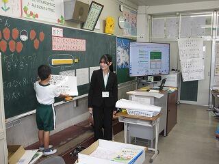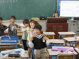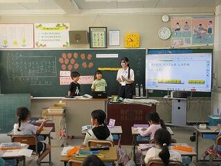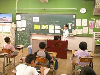 ★国語の時間、「くじらぐも」の学習をしていました。実習生が授業をしていました。指導教官を見習い、たくさん子どもを褒めていたので、子どもがとても意欲的に取り組んでいました。