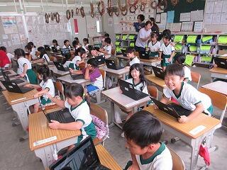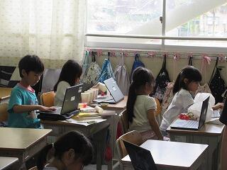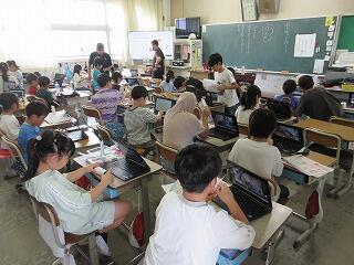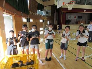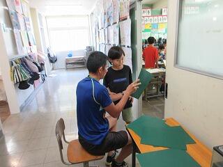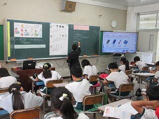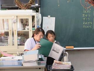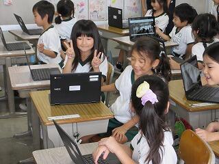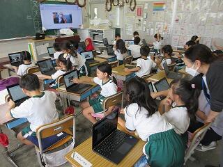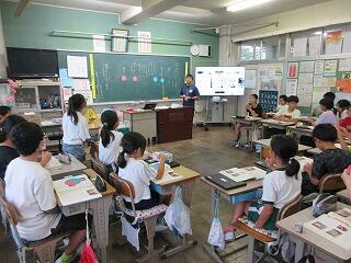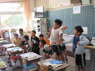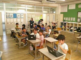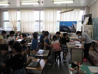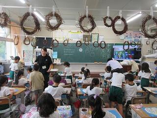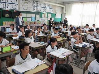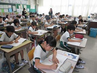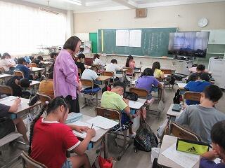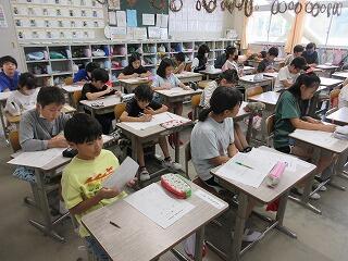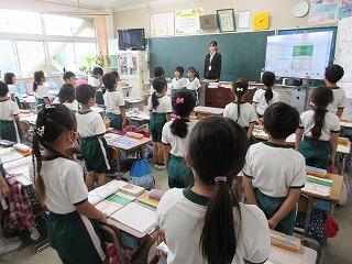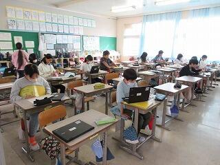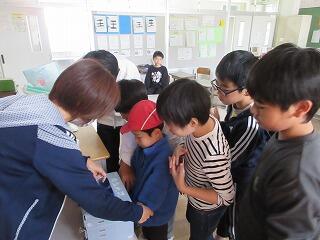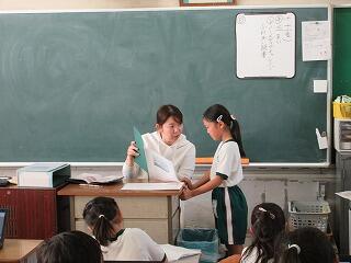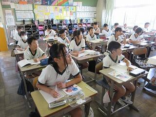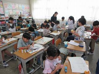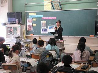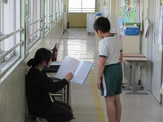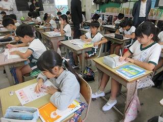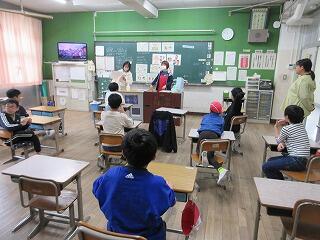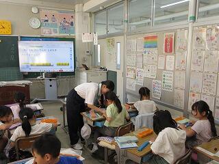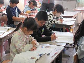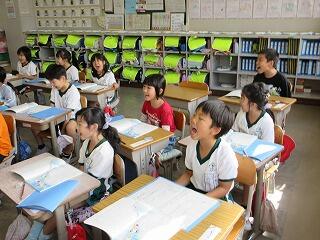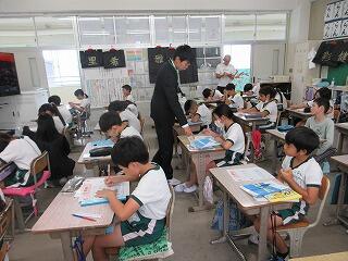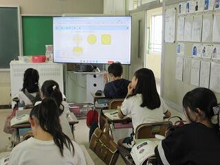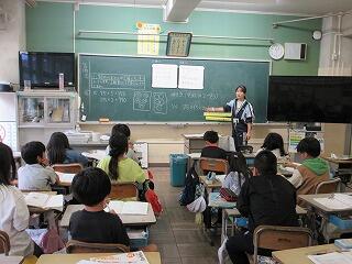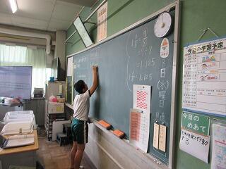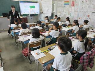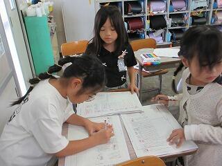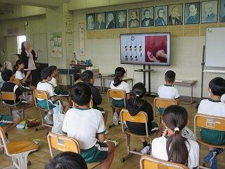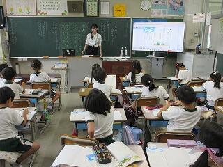 ★国語の時間、「くじらぐも」の学習をしていました。実習生が授業をしていました。指導教官を見習い、たくさん子どもを褒めていたので、子どもがとても意欲的に取り組んでいました。