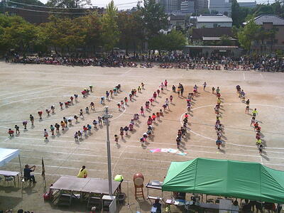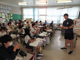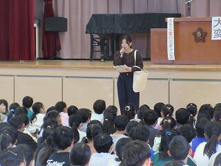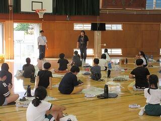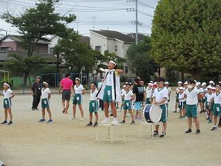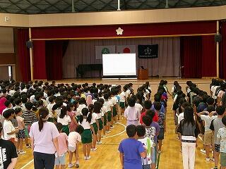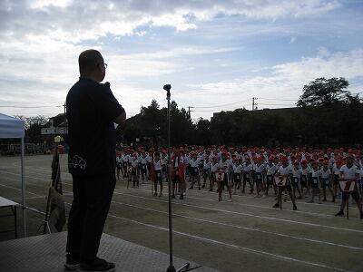 先生からは世界陸上で素晴らしい記録を出した選手のエピソードから、世界記録をだすまでに、その選手はどんな準備や努力をしてきたのかを、児童と共に考えました。そして、運動会や普段の生活の中で一人一人が全力を出せるようにと呼びかけました。