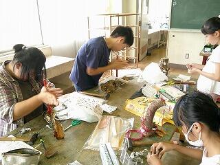 金属と自然の木を組み合わせると思いがけない美しさが見えてくる。材料を加工して、お気に入りの組み合わせを考えながら、世界にひとつだけの作品作りを思い思いに楽しんでいました。