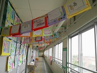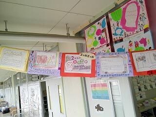 ★読書が大好きな2年生の廊下には、自分のおすすめの本を紹介するカードが、たくさん廊下に掲示されています。お気に入りの場面のイラストも可愛いですね。