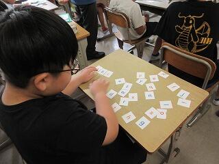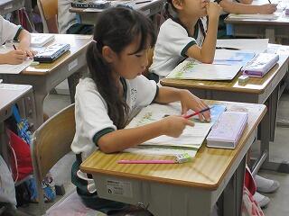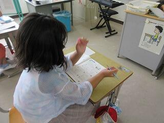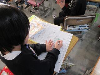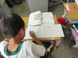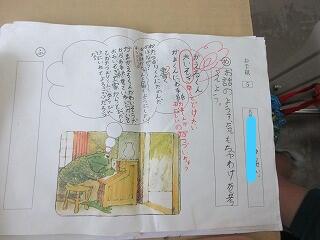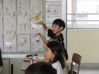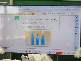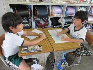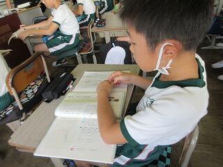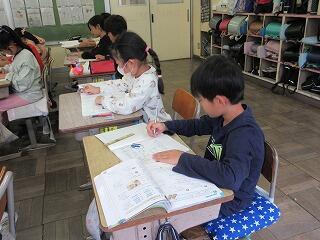 ★国語の時間、「くじらぐも」の学習をしていました。先生とのやりとりしながら、お話の大体を読み取っていました。先生の質問に対してとても意欲的に答えていました。