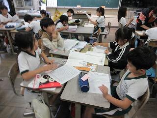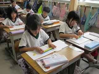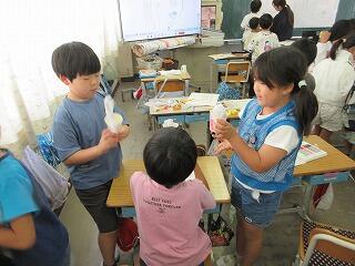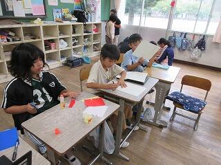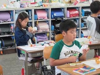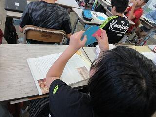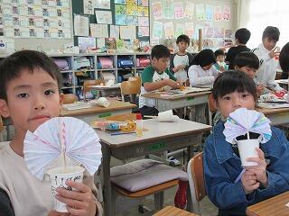 ★国語の時間、「紙コップ花火の作り おもちゃの作り方をせつめいしよう」の学習をしていました。今日は、教材文をよみながら実際に紙コップ花火を作っていました。体験的な活動を通して教材文の説明のわかりやすいところを学んでいきます。