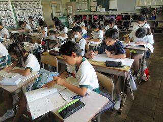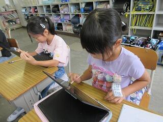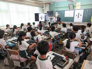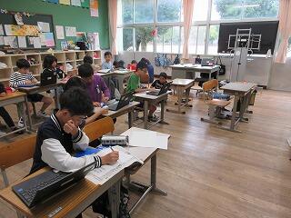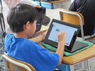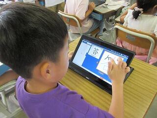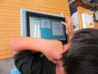 ★国語の時間、漢字の学習をしていました。ドリルと鉛筆で練習した後は、タブレットを活用してどんどん自分のペースで練習します。ハイブリット漢字練習です。